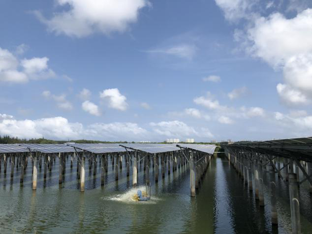 文昌旻暉35MW漁光互補(bǔ)光伏發(fā)電電站。位于海南省文昌市,目前是海南省最大的光伏項(xiàng)目,于2017年開(kāi)工建設(shè),由文昌旻暉光伏發(fā)電有限公司投資,中國(guó)電建海南電力設(shè)計(jì)研究院有限公司進(jìn)行工程設(shè)計(jì)及承建。2018年6月21日正式并網(wǎng)發(fā)電運(yùn)行, 2019年8月由遼寧安宇能源集團(tuán)有限公司出資2.5億元全額收購(gòu),并網(wǎng)發(fā)電以來(lái)經(jīng)濟(jì)效益相當(dāng)可觀。電站附屬項(xiàng)目有:投資500萬(wàn)元養(yǎng)殖澳洲小龍蝦項(xiàng)目;投資600萬(wàn)元農(nóng)業(yè)種植項(xiàng)目,主要引進(jìn)種植東北優(yōu)質(zhì)品種九九草莓及水果番茄等各種名貴品種水果及其它農(nóng)業(yè)種植和生態(tài)旅游項(xiàng)目。